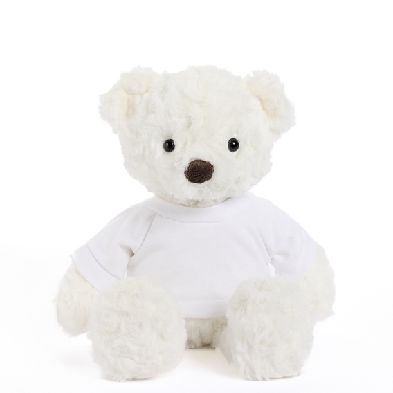 Do misia dołączona jest biała koszulka. Można na niej umieścić spersonalizowaną grafikę, logo lub po prostu udekorować ją wg własnych upodobań.